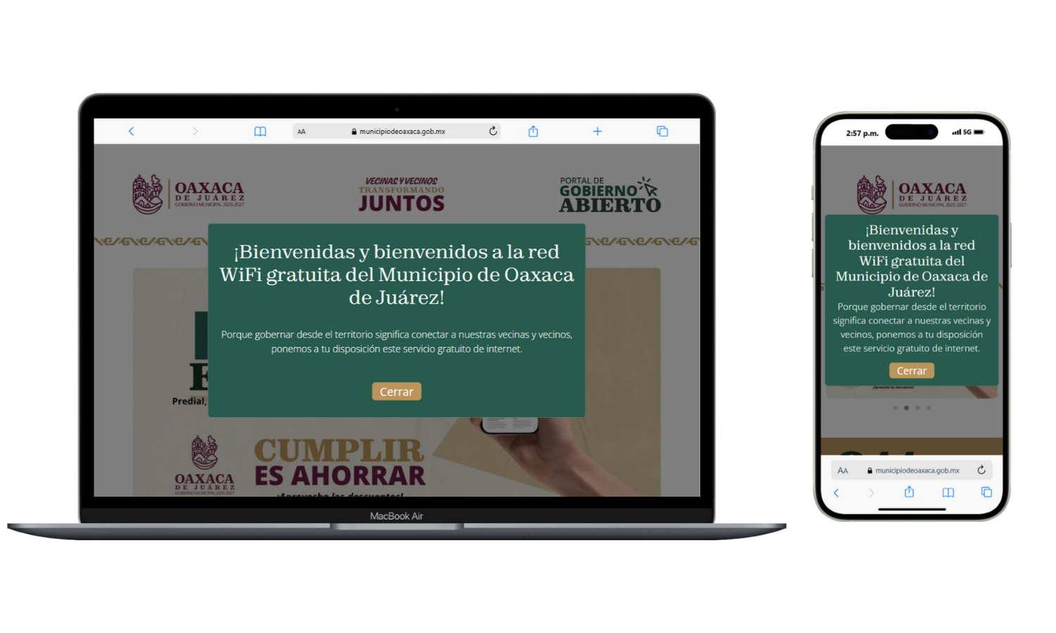 Pagina de Inicio al conectarse a las redes del municipio de Oaxaca de Juárez.