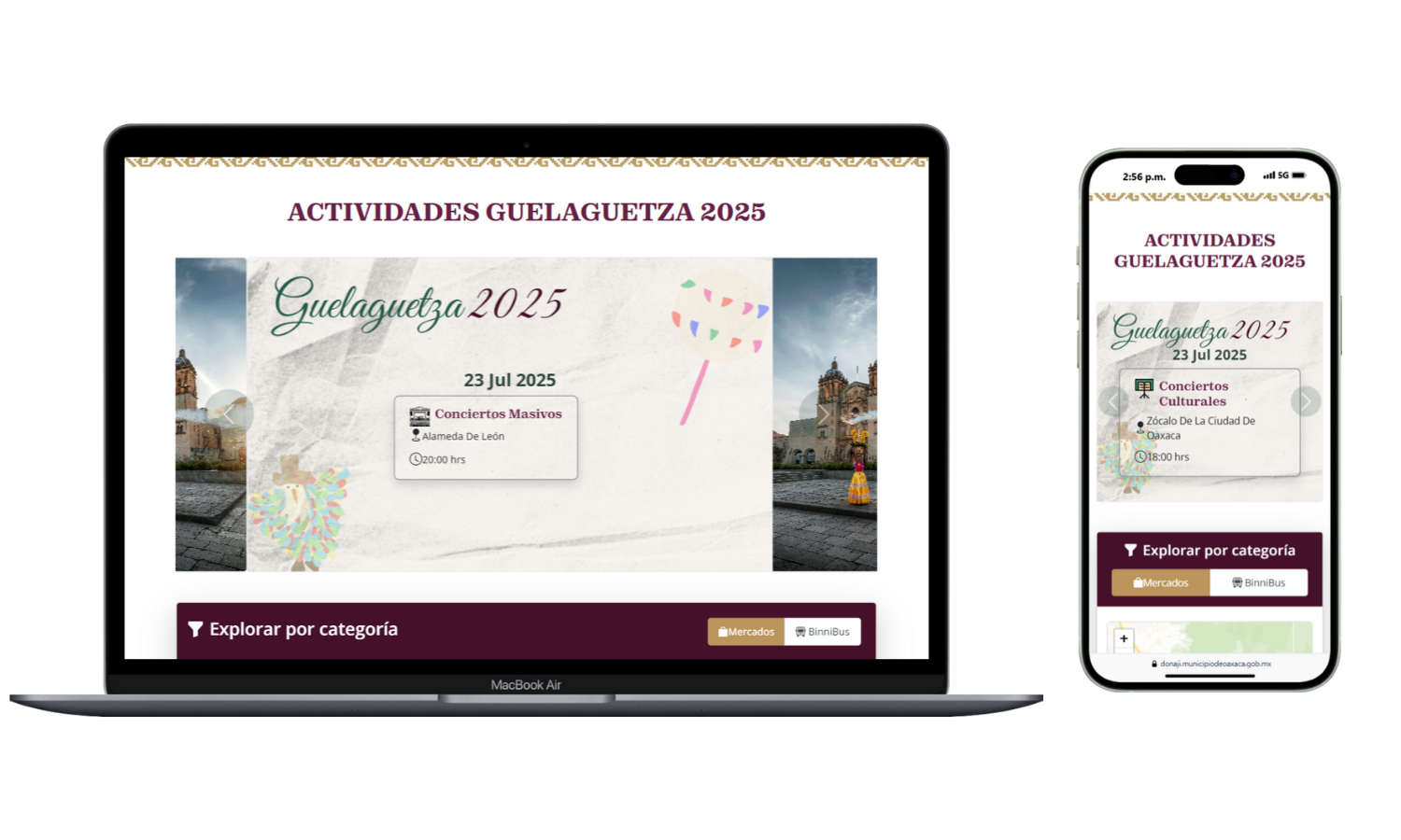 El portal de las actividades programadas para la Guelaguetza 2025 desde el cual se pueden ver los eventos y localizar los lugares.